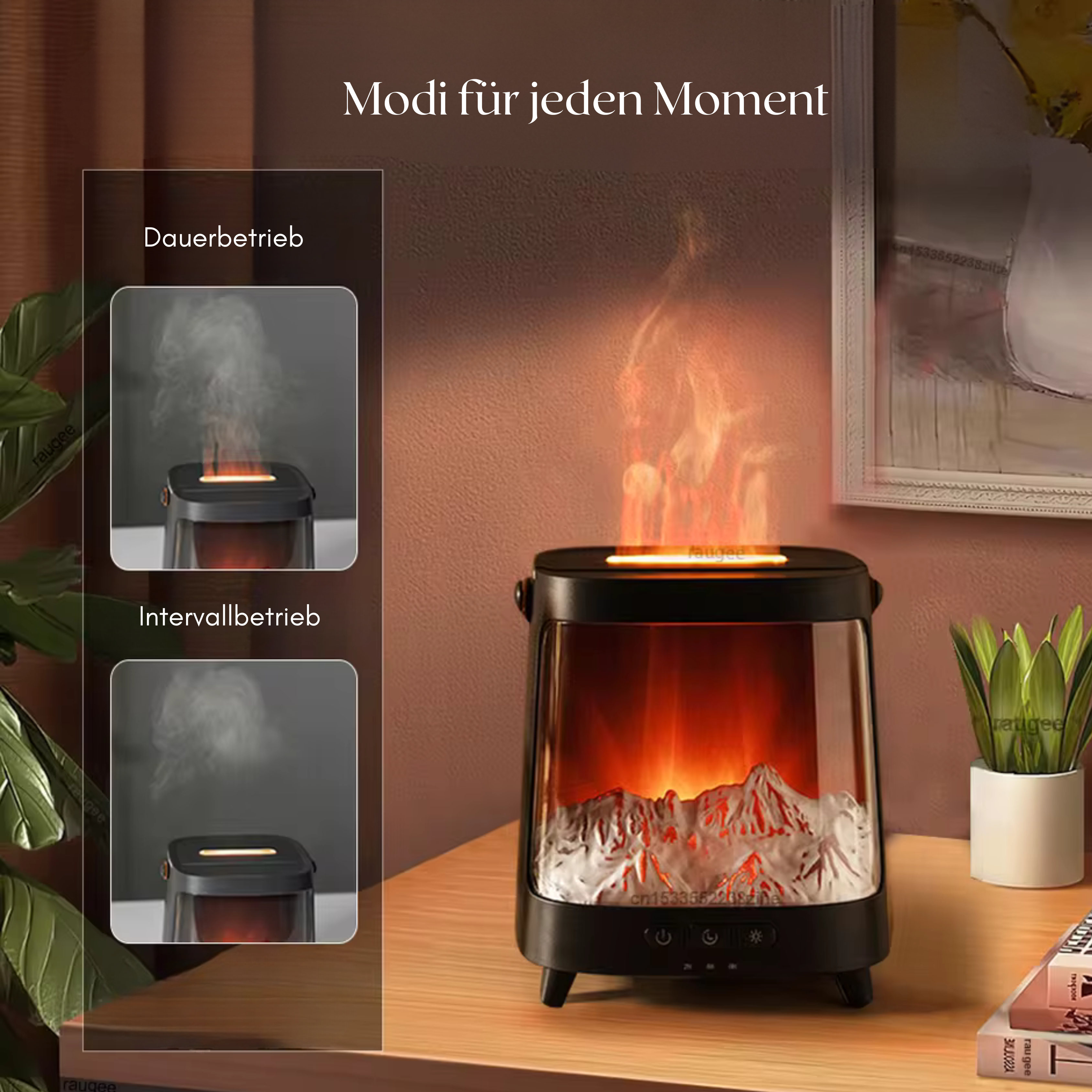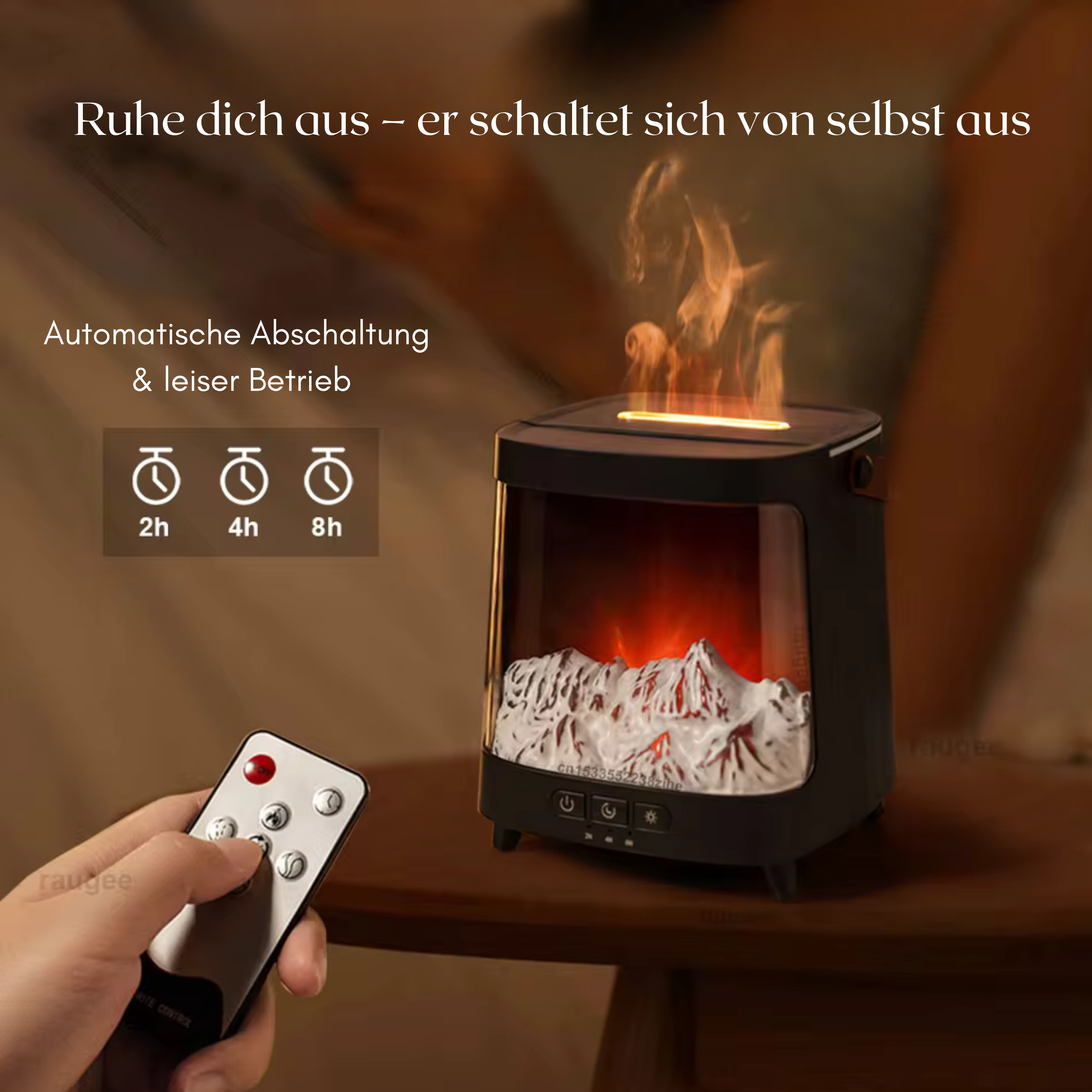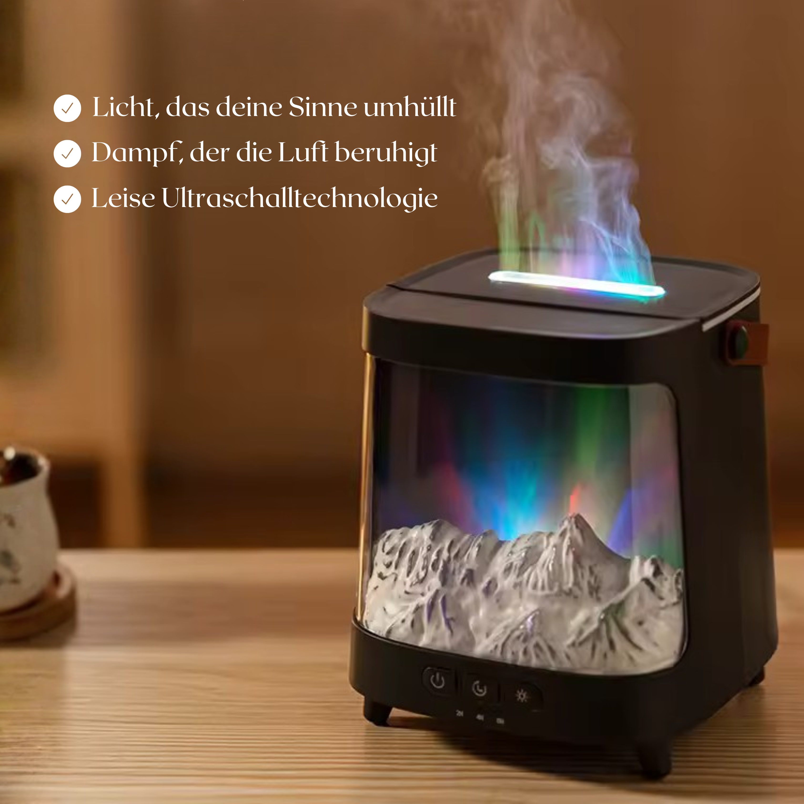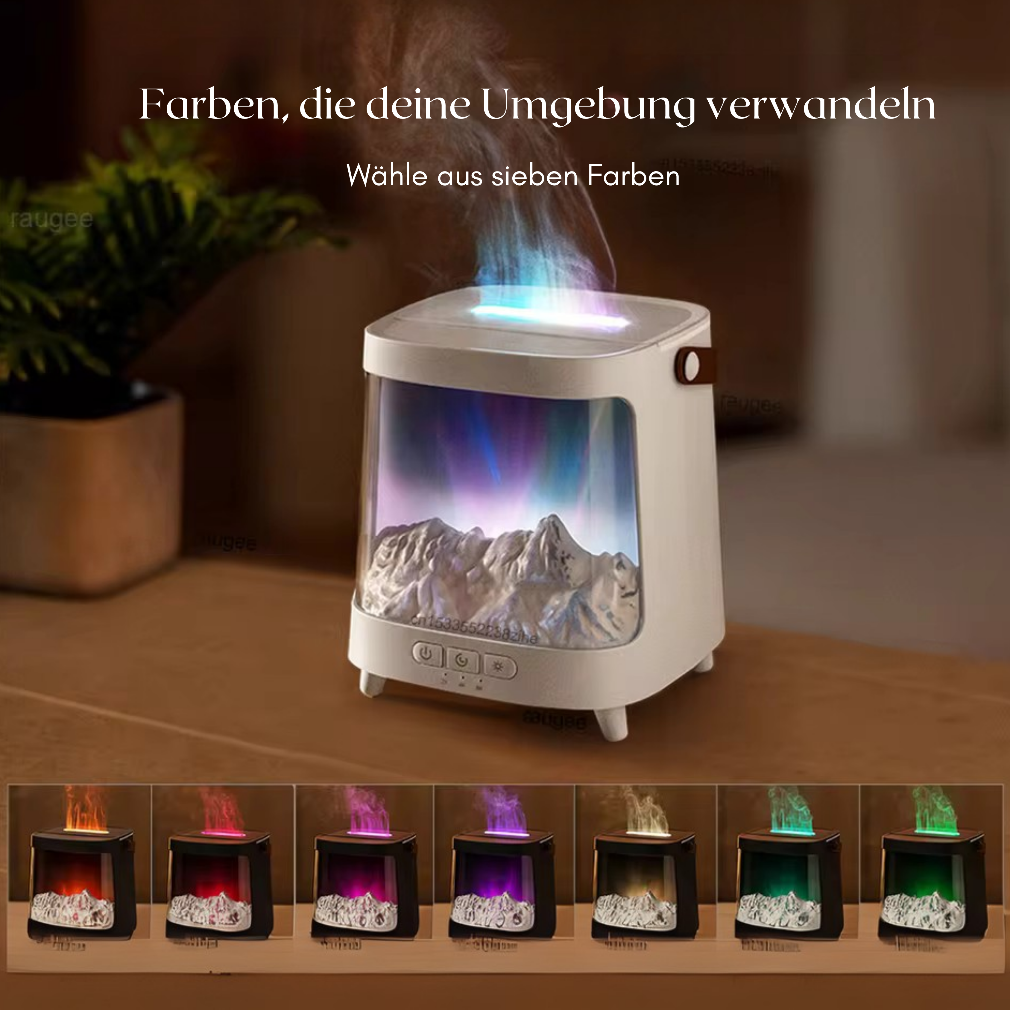 Dieser von Bergen inspirierte Diffusor vereint Aromatherapie mit einem hypnotischen Lichteffekt. Sein feiner Nebel imitiert eine echte Flamme, wÀhrend die Auroralichter das Relief in lebendigen Farben erstrahlen lassen.